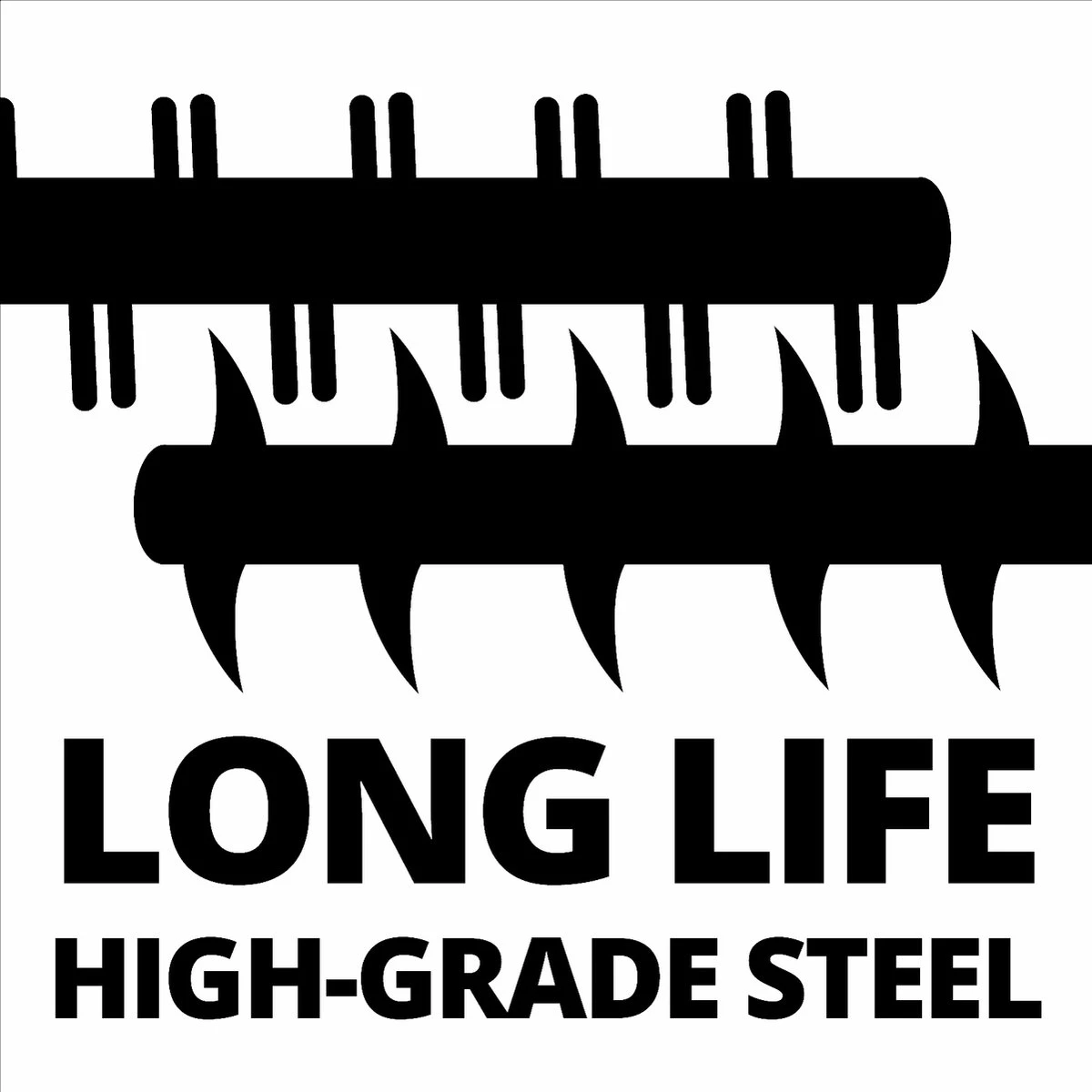 Zowel de messen- als ook de beluchtingsrol gaan een lange tijd mee, door de hoogwaardige kwaliteit van het materiaal waarmee de messen geproduceerd worden. De elektrische verticuteerder is op vier verschillende dieptes in te stellen, tot een maximum van 12 mm. De machine beschikt over een robuuste opvangbak met een inhoud van 48 L, om het vrijgekomen gras, mos en ander tuinafval op te vangen. Met de plastic wielen wordt het gazon niet aangetast. Om veilig te kunnen werken heeft de machine een handige kabelclip aan de onderzijde van de duwboom, waar de elektriciteitskabel opgehangen kan worden. De machine is eenvoudig op te bergen, door het kliksysteem op de duwboom van de machine. Door de duwboom in te klappen, krijgt de machine een zeer compact formaat. Dit maakt het mogelijk om de machine makkelijk te verplaatsen of op te bergen. Het mes onder de kap kan eenvoudig verhoogd worden, om schade aan de messen te voorkomen.
