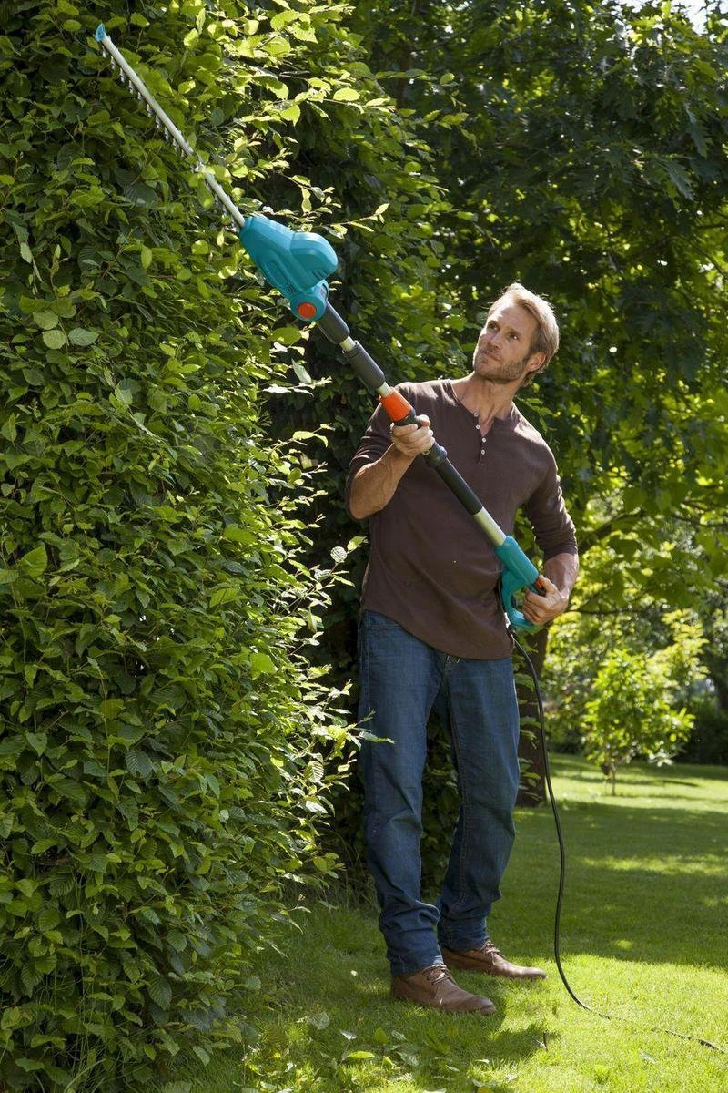 Met de Gardena THS 500/48 heggenschaar kunt u hoge heggen eenvoudig en veilig snoeien vanaf de grond.